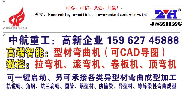 英文:Committed to the research and development of high-tech products (the original country relied on imported special equipment): servo CNC, digital display: three-axis, four-axis profile bending machine (CAD map available), flange machine, fully automatic servo CNC profile Bending machine (core pulling), top bending machine, CAD servo CNC arc bending machine (roll bending machine), intelligent CNC three-roller, four-roller plate bending machine, special top bending machine,