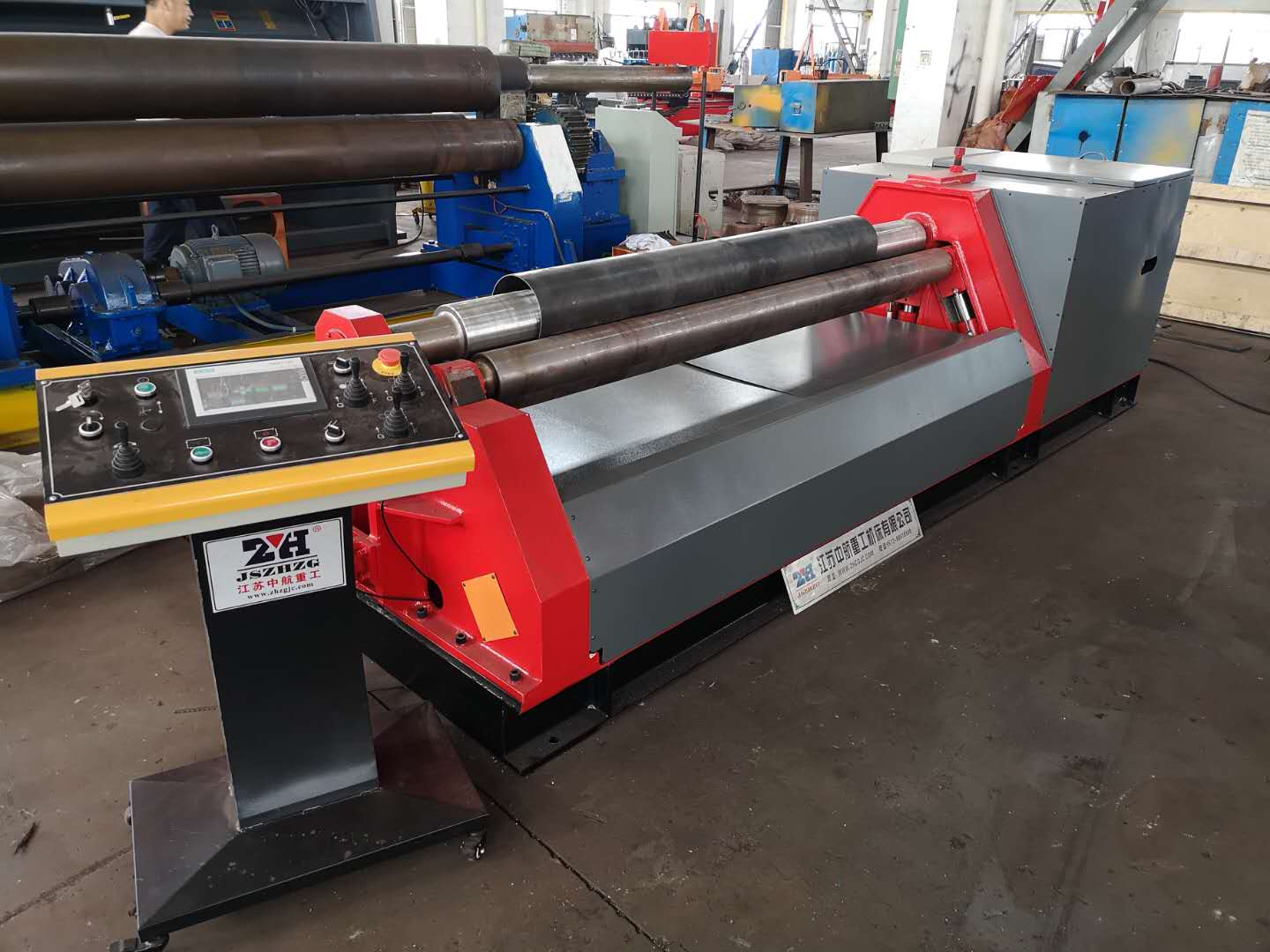 但該機(jī)結(jié)構(gòu)龐大、材料消耗多、制造周期長(zhǎng)。20世紀(jì)80年代中期,全液壓四輥數(shù)控卷板機(jī)和液壓水平下調(diào)式三輥數(shù)控卷板機(jī)由該廠推向市場(chǎng)。這兩種機(jī)型既可對(duì)板材進(jìn)行預(yù)彎,一次上料完成筒體成形,又可對(duì)筒體進(jìn)行焊接后的校圓,工作效率是原機(jī)型的2~3倍。20世紀(jì)80年代末,由PC、NC控制的三、四輥數(shù)控卷板機(jī)進(jìn)入國(guó)內(nèi)市場(chǎng)。該機(jī)具有工作輥(上輥或下輥)自動(dòng)調(diào)平、工作輥傾斜狀態(tài)可同步升降等功能,工作輥間同步精度控制在±0.2mm范圍內(nèi)。90年代初,中航在國(guó)內(nèi)首先開發(fā)出的弧線下調(diào)式三輥數(shù)控卷板機(jī)和弧線四輥數(shù)控卷板機(jī),一次裝卸板料即可完成端部預(yù)彎和卷圓,轉(zhuǎn)臂弧線擺動(dòng)比線性導(dǎo)軌摩擦損失小,卷板受力合理,機(jī)器重量輕,整機(jī)結(jié)構(gòu)緊湊合理。
